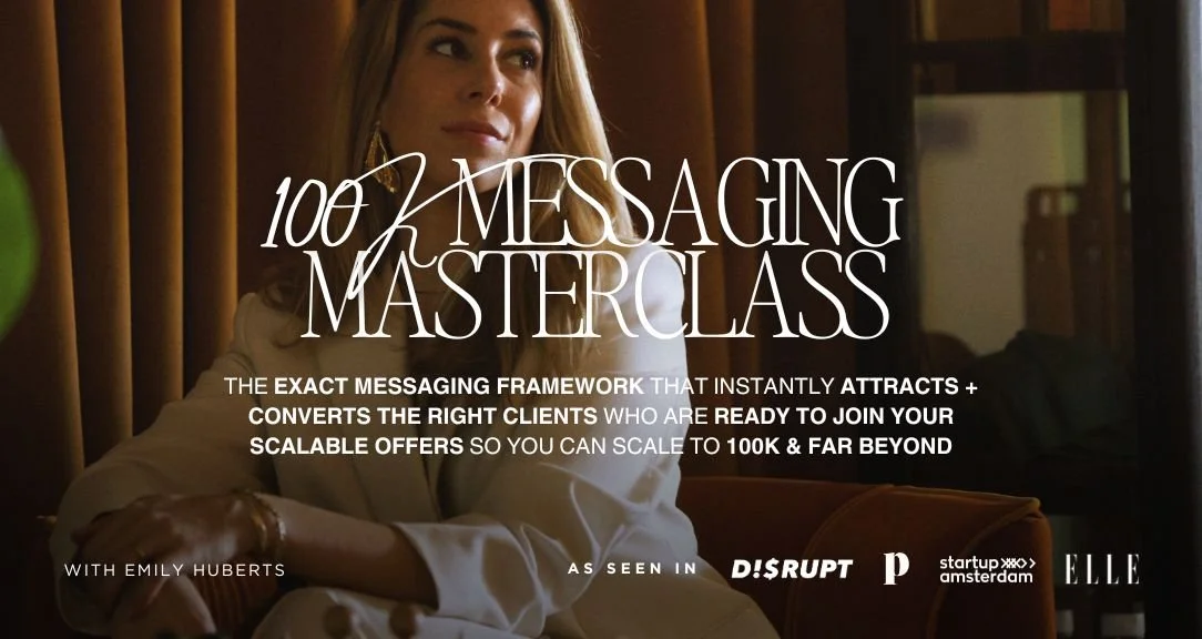 The exact messaging framework that instantly attracts + converts the right clients who are ready to join your scalable offers so you can scale to 100K & beyond.
